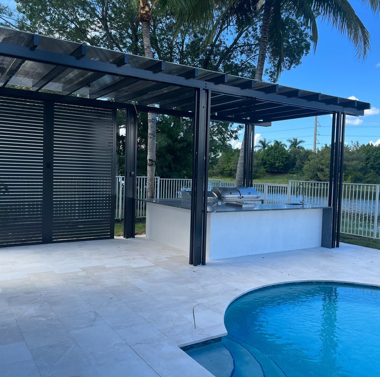 Explore our stunning outdoor kitchens, pergolas, and luxury pool decks.